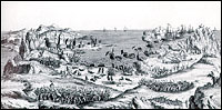 The engraving bears the inscription, "at Bassets Rue St. Jacques, Paris." The battle depicted here is probably fanciful.